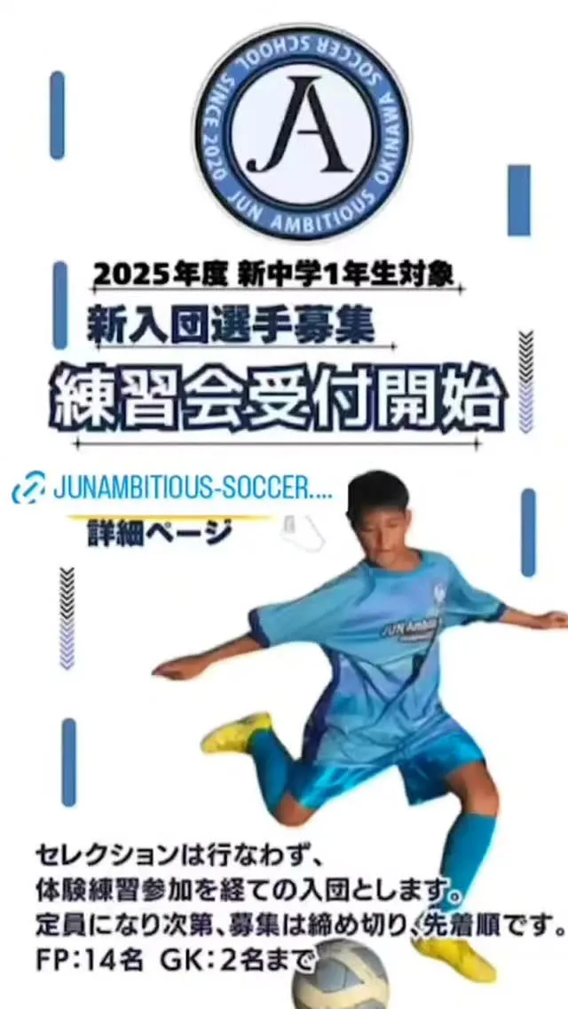 当スクールのJAOSS U-15では、次年度のジュニアユース...